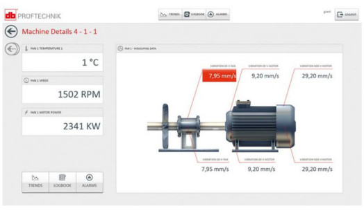 The user interface features a clearly structured design. A traffic light function gives a quick overview of the current condition of the monitored assets. In case of a warning or alert, trend data is available from recent days or weeks, depending on customizable settings. This helps the user identify the rate of condition deterioration at a glance. Threshold violations can be acknowledged and documented on the interactive machine sitemap. These records may then be used as an alarm log. Thus, this software is an ideal tool for managers and machine operators.