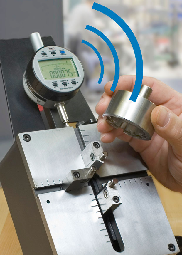 Using the selectable resolution option with Ri indicators provides an easy cost-effective way of creating a wireless data collection package. With an i-stick USB receiver and MarCom software, users can record data from work pieces that have varying tolerances. Integrated wireless digital indicators are the most economical way to update an existing bench or hand gage for data collection. It involves no change in the operator’s way of measuring parts, but allows those measurements to be documented and used for process and quality decisions.